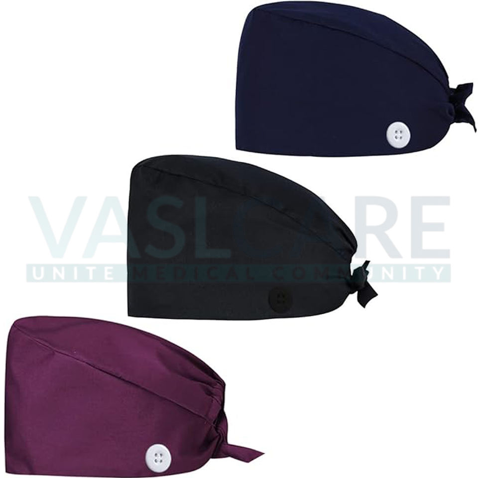 Casquette de gommage chirurgical solide Infirmière médicale Médecin Cap Chirurgiens Cap avec bandeau et Botton pour femmes et hommes