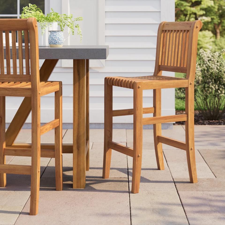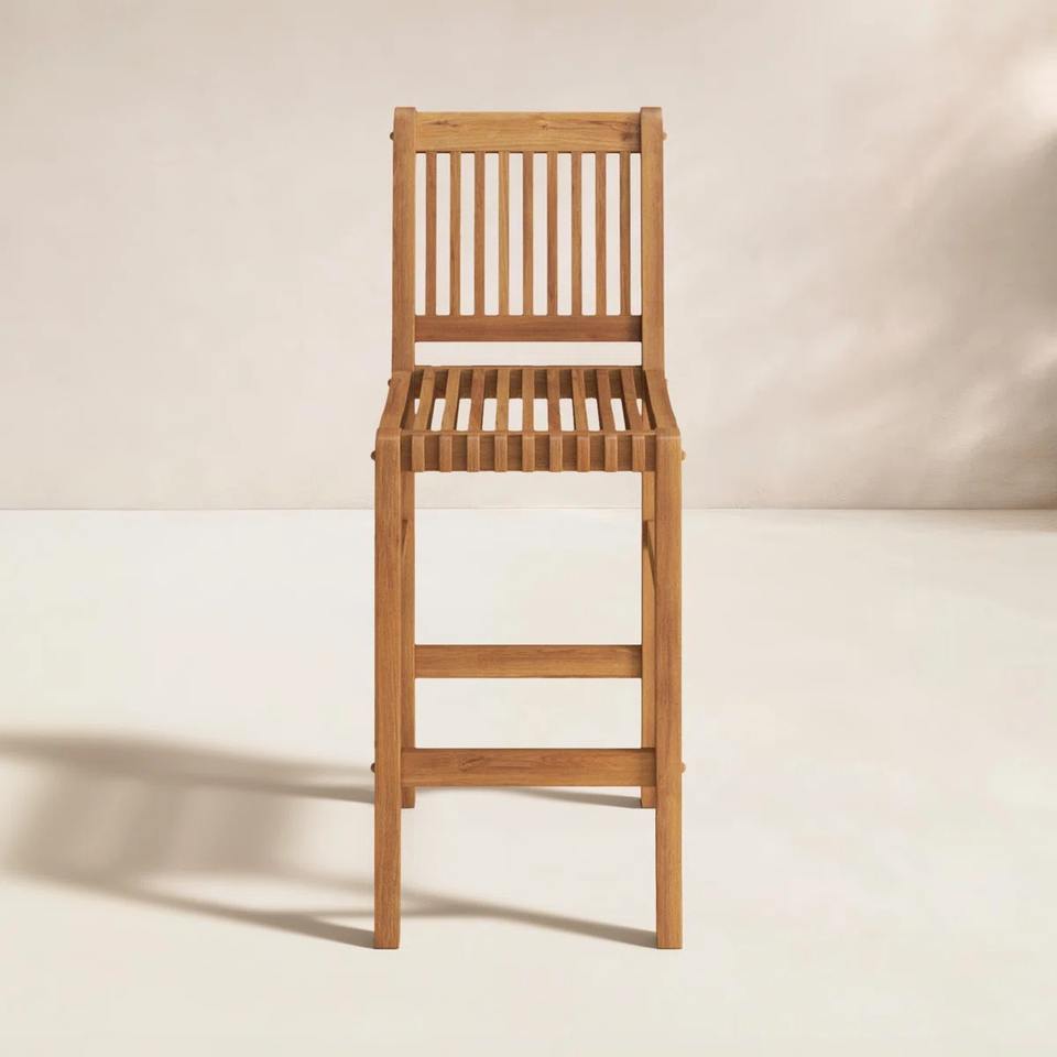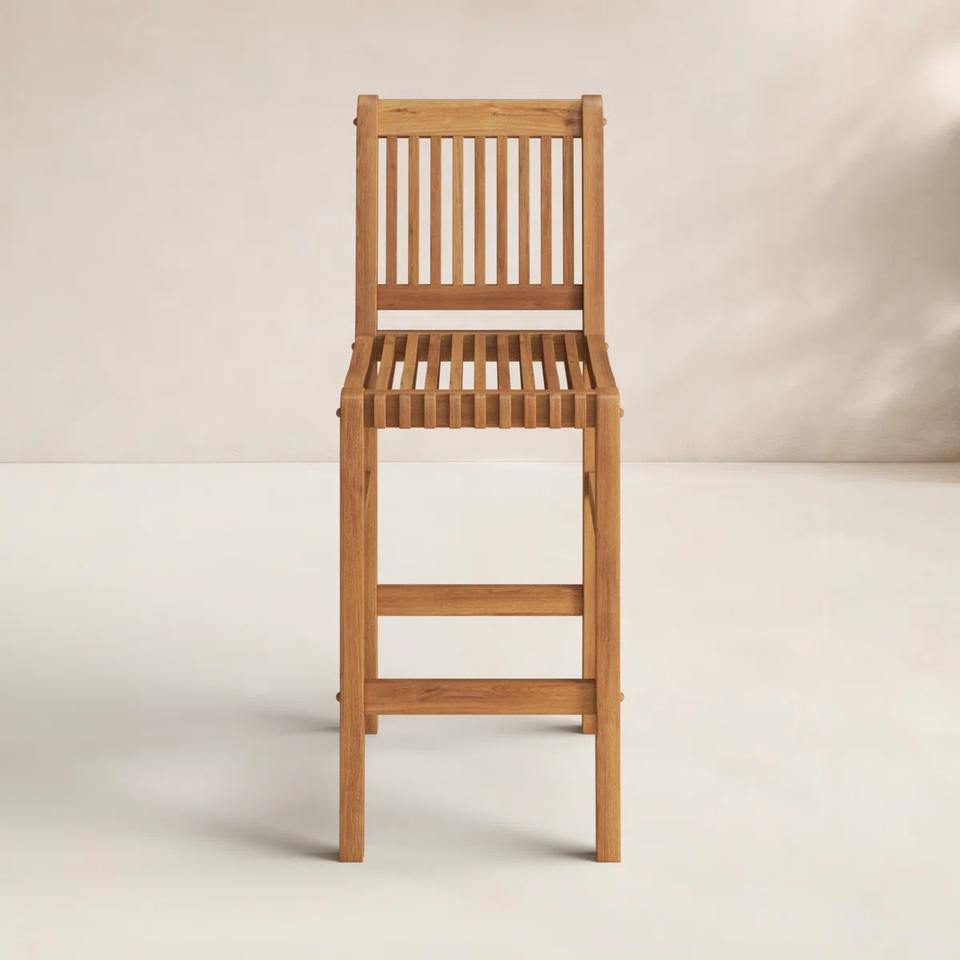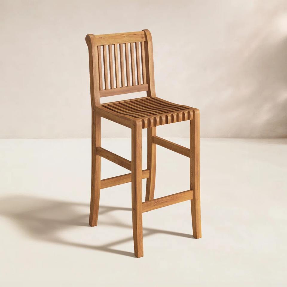 Chaise de bar moderne en teck massif avec structure en bois naturel et dossier rond confortable pour usage commercial dans les salles à manger et les salons