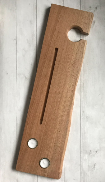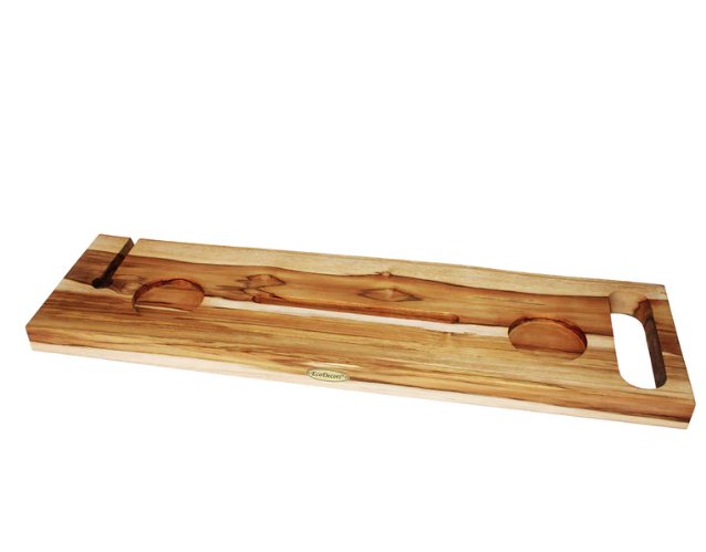 Porte-accessoires de bain en teck massif avec support pour tablette et porte-vin