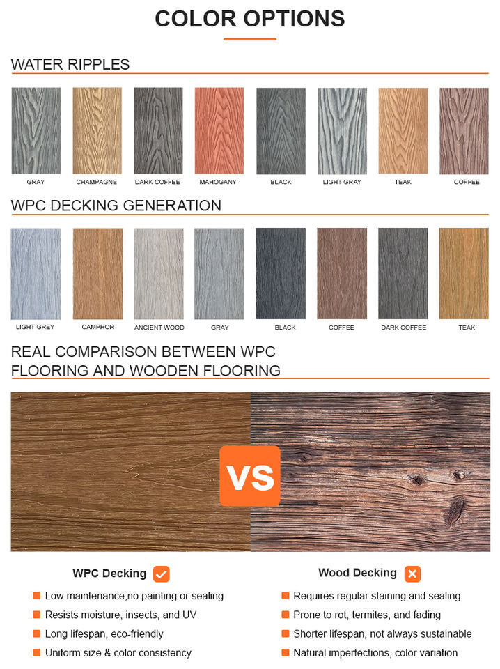 Plate-forme composite solide, imperméable et antidérapante en bois et plastique pour jardin, patio, piscine WPC