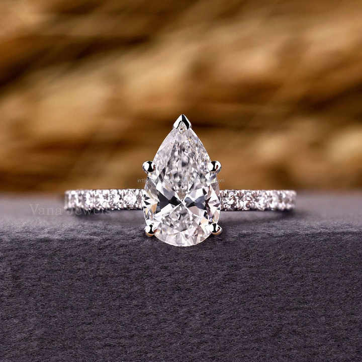 Bague de fiançailles en or blanc massif avec diamants cultivés en laboratoire à cinq griffes pour mariage ou cadeau d'anniversaire