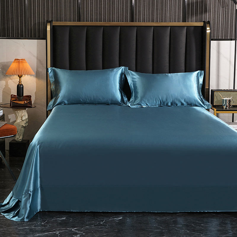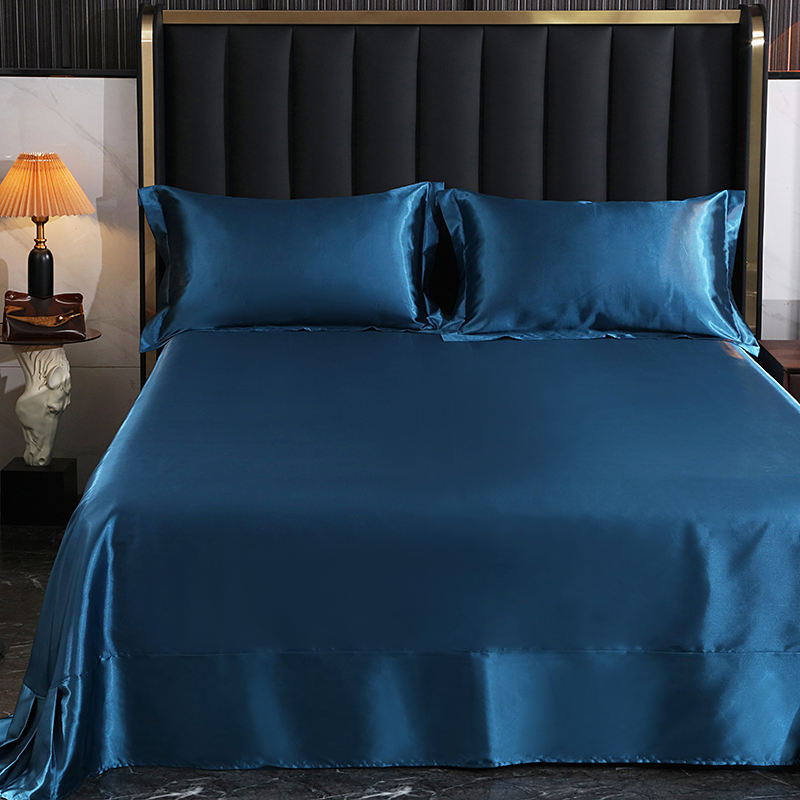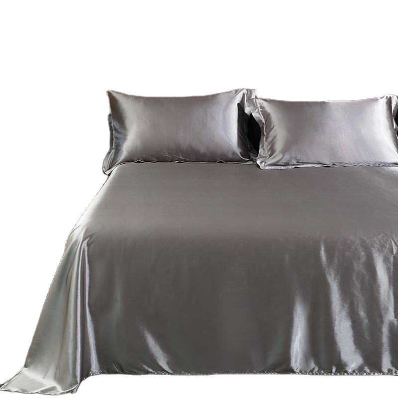 Drap de lit solide en gros Couvre-lit en soie imitée Textile de maison Drap plat Coloré Tache De Luxe Été Soyeux Ensemble de draps de lit