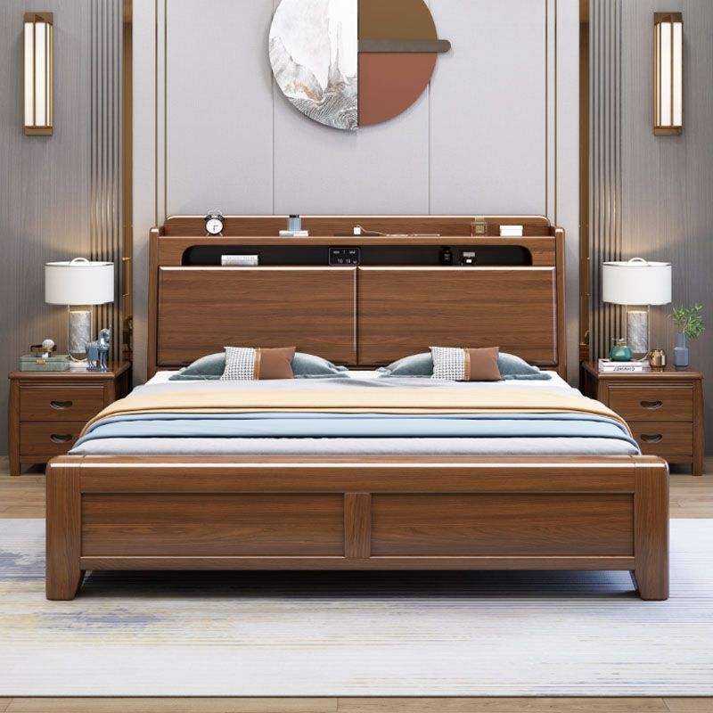 Lit en bois massif couleur noyer 1,8 m, lit double avec rangement, meubles de chambre principale