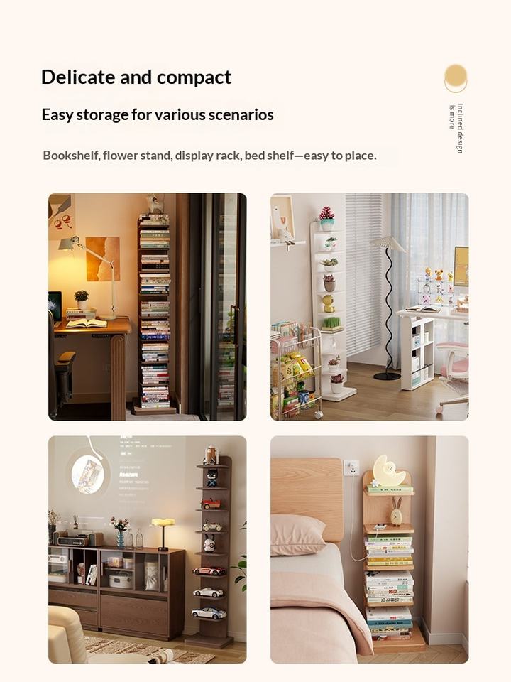 Bibliothèque en bois massif, style moderne et luxueux, table de chevet, étagère de rangement multi-niveaux, rangement vertical invisible, chambre à coucher, maison, petit appartement SJ025