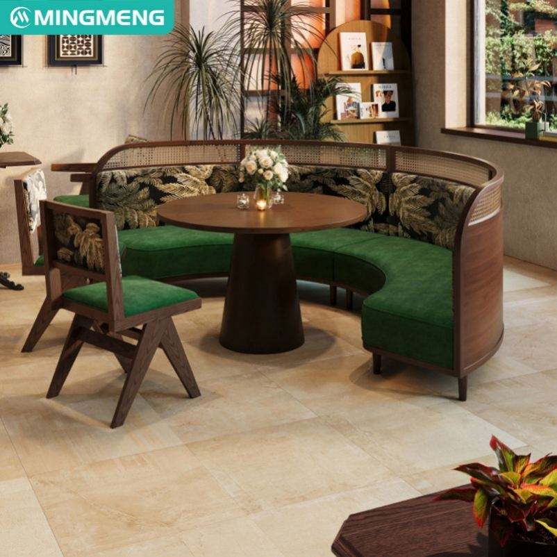 Solid Wood Cafe Chairs with Sofa for Hotels and Coffee Shops Booth Sofa for Restaurants Sets
