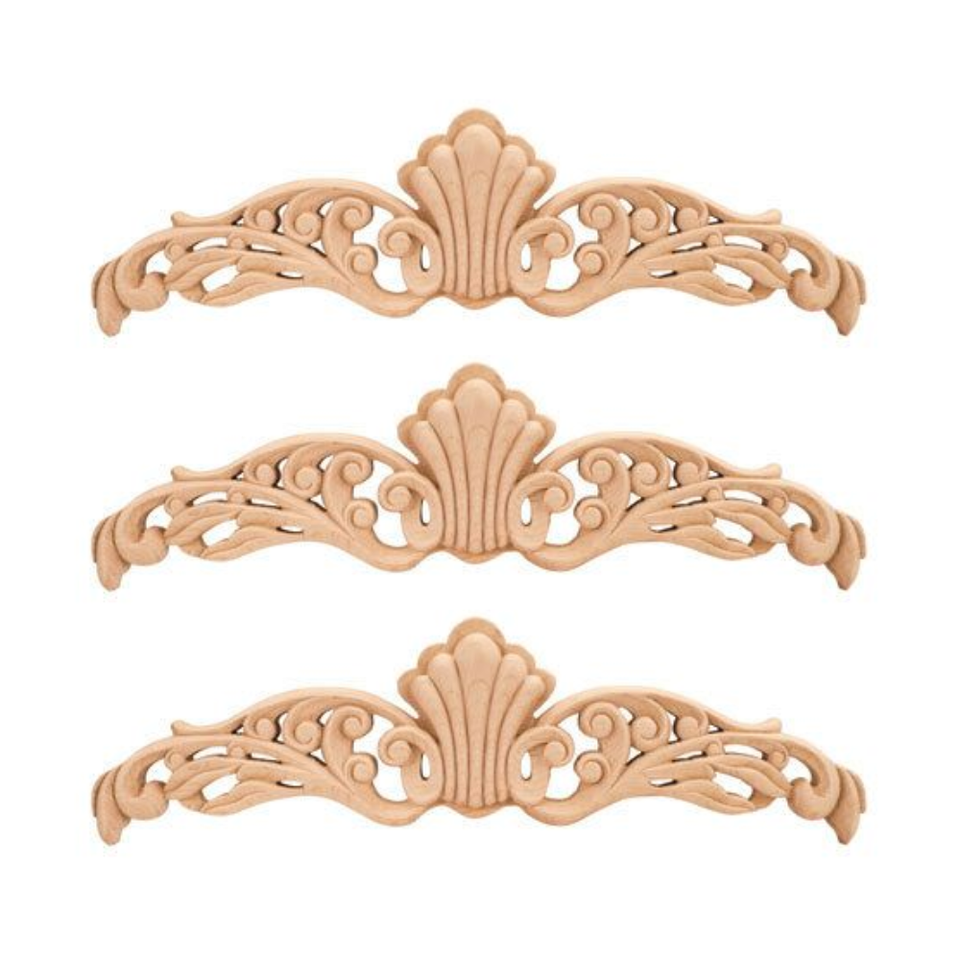 Solid Wood Carved Onlays Sculpture Exquisite Floral Carving Wood Applique Cabinet Home Furniture Decoration Premium Wood Onlays