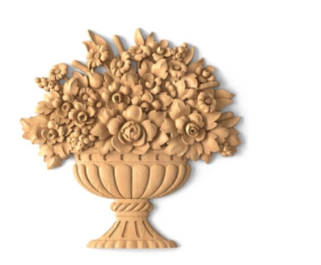 Solid Wood Carved Onlays Sculpture Floral Carving Wood Applique for Cabinet Decoration Home Furniture Handmade Decorative Corbel