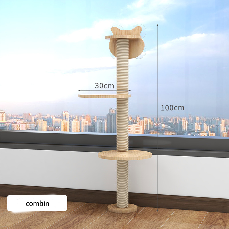 Arbre à chat en bois massif avec montage facile, combinaison DIY, griffoir, plateforme de saut, niche et cabane pour chat