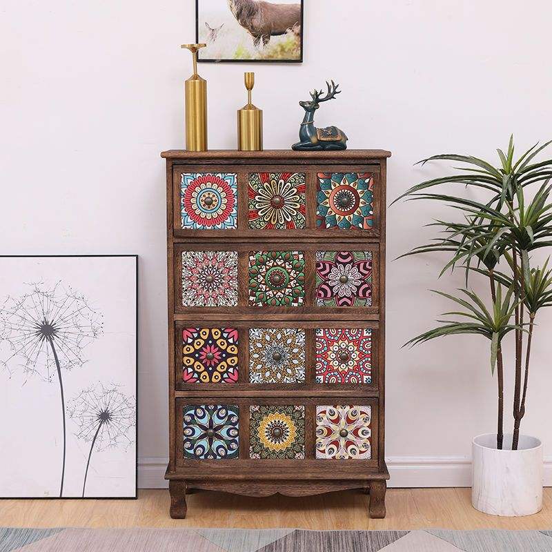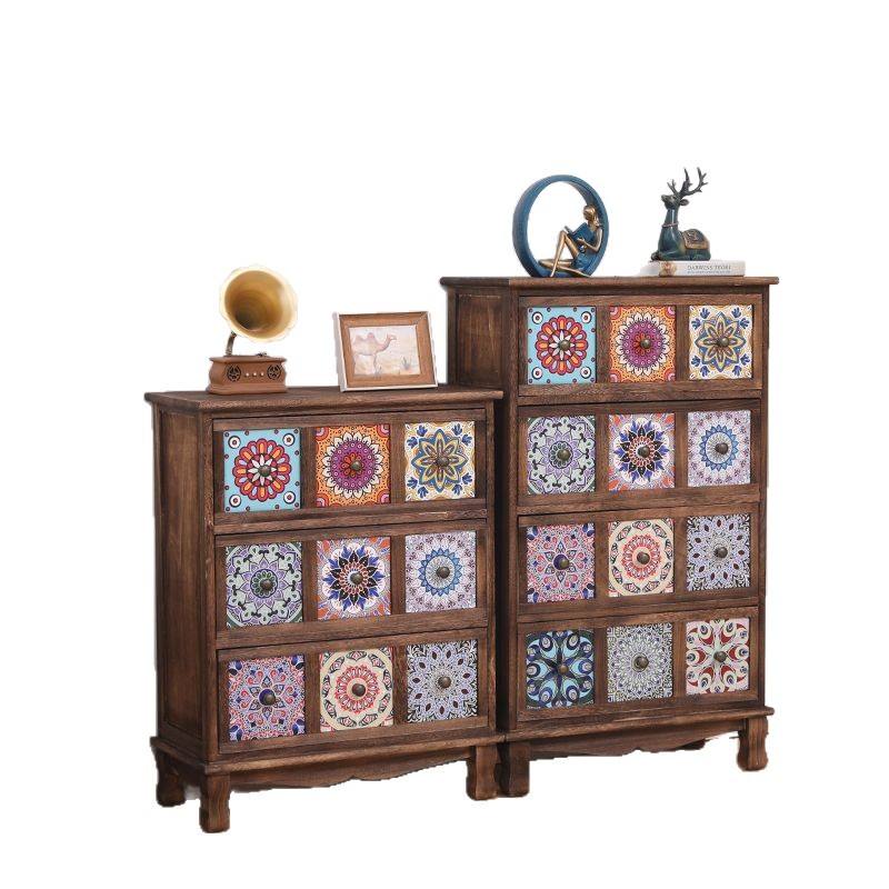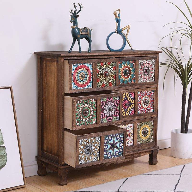 Commode en bois massif avec panneaux peints, armoire de rangement pour salon et chambre à coucher, design à plusieurs niveaux