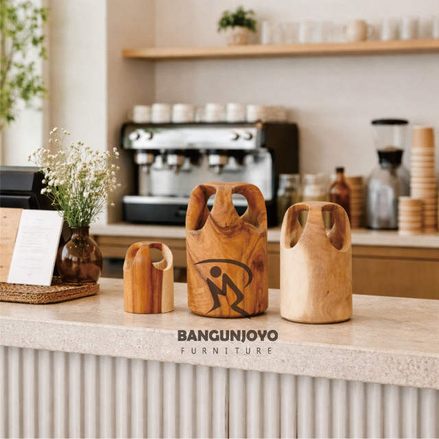 Ensemble d'accessoires en bois massif pour comptoir de réception et table de bar minimaliste moderne, usage hôtelier/villa
