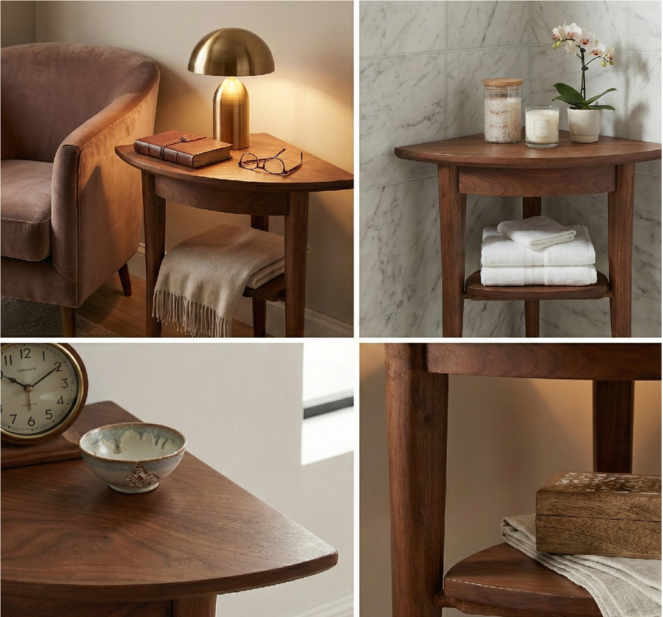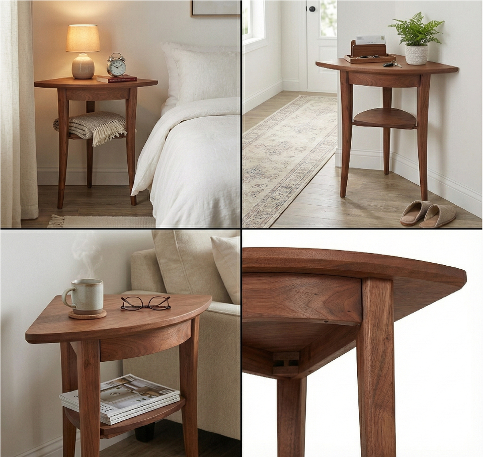 Nom du produit:Petite table d'angle en bois massif à 2 niveaux