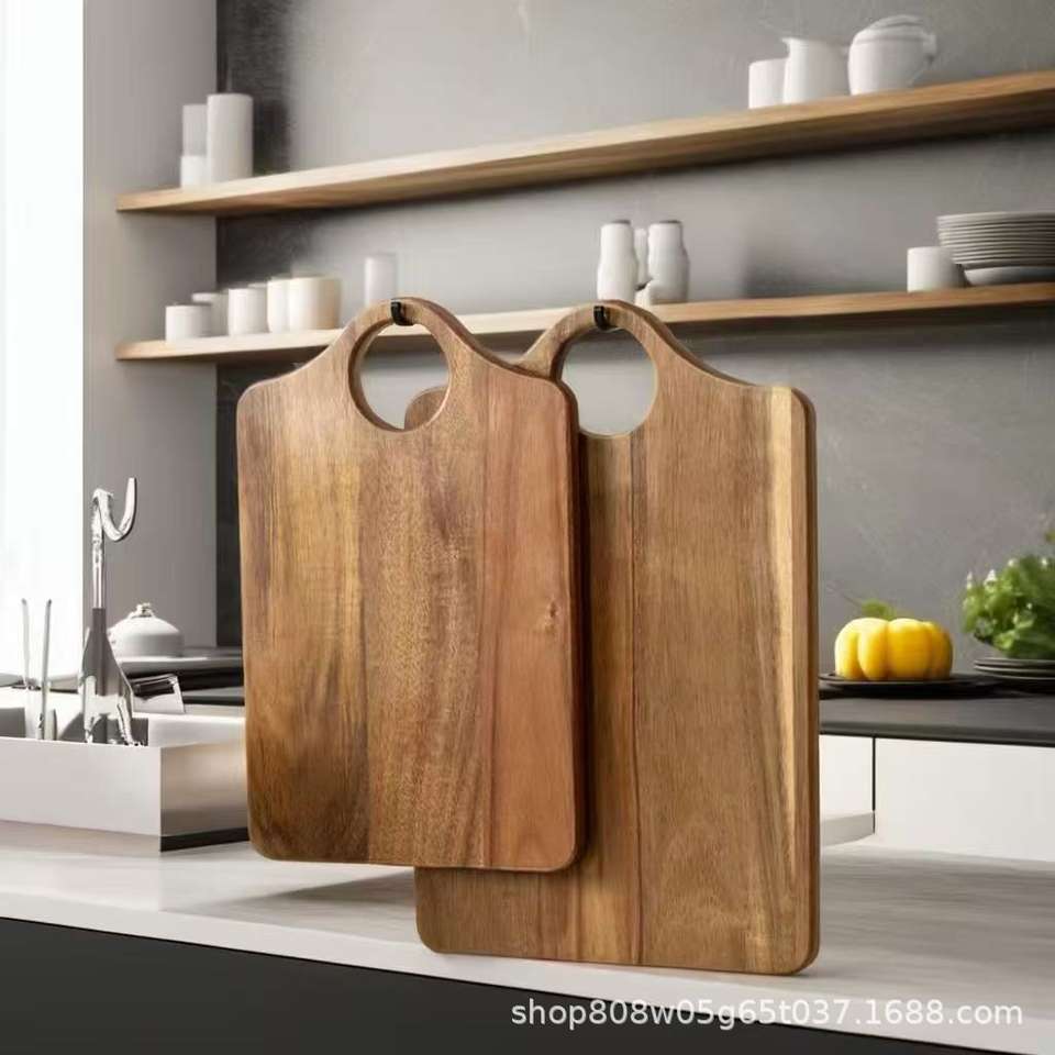 Planche à découper rectangulaire en bois massif, bloc de découpe multifonctionnel pour la cuisine, pour servir des fruits, des pizzas, des desserts, couleur rétro