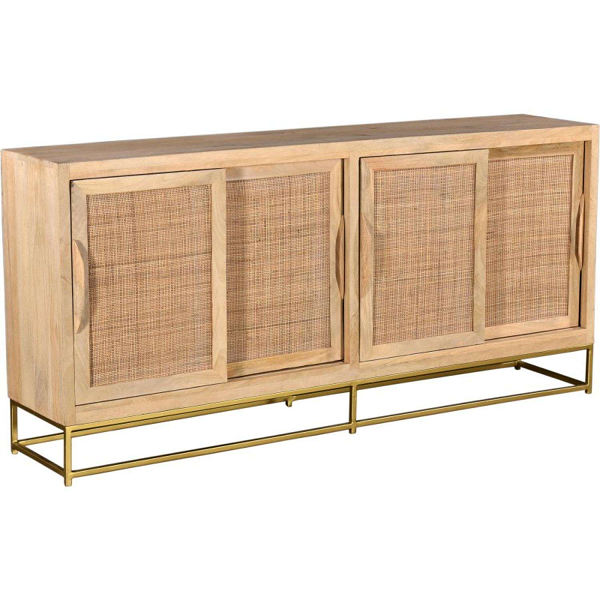 Buffet de salle à manger en bois massif avec panneaux en bois sculptés à la main, meuble de rangement décoratif pour salon