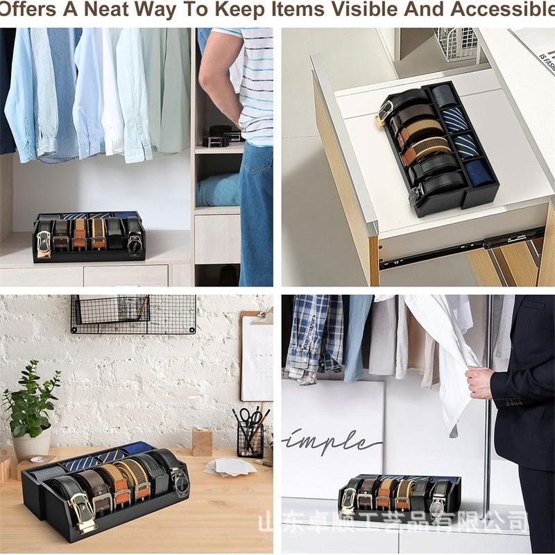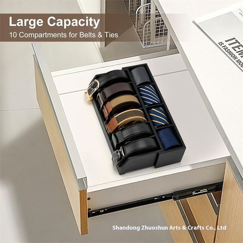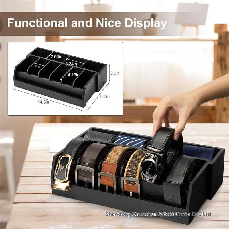 Boîte de présentation en bois massif tiroir multi-grille garde-robe stockage Design moderne ceinture en bois support organisateur pour magasin de vêtements porte-cravate