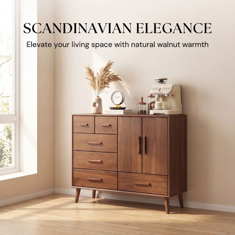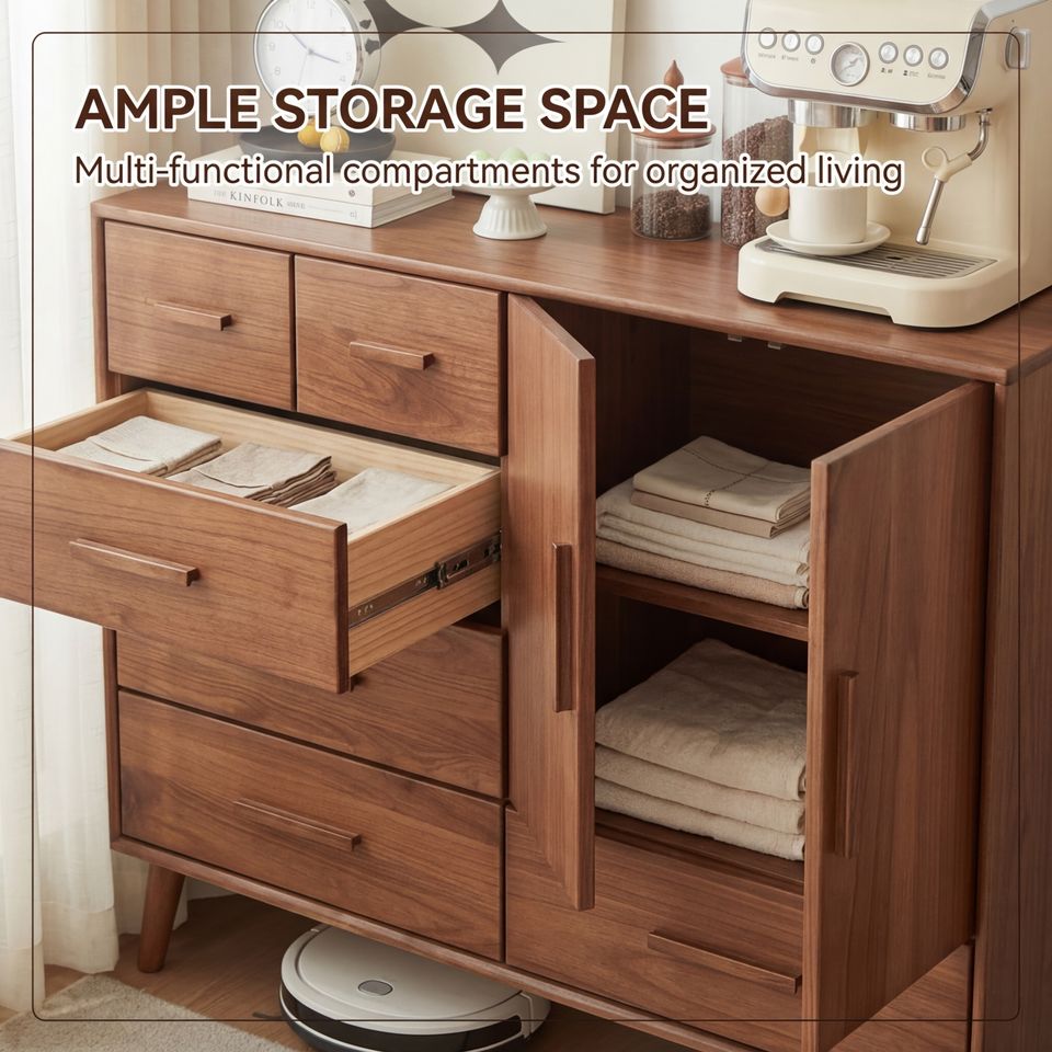 Armoire de rangement en bois massif écologique et peu encombrante, 6 tiroirs, 2 portes, style moderne du milieu du siècle, pour chambre à coucher, salon, entrée