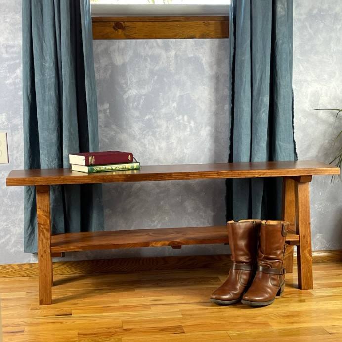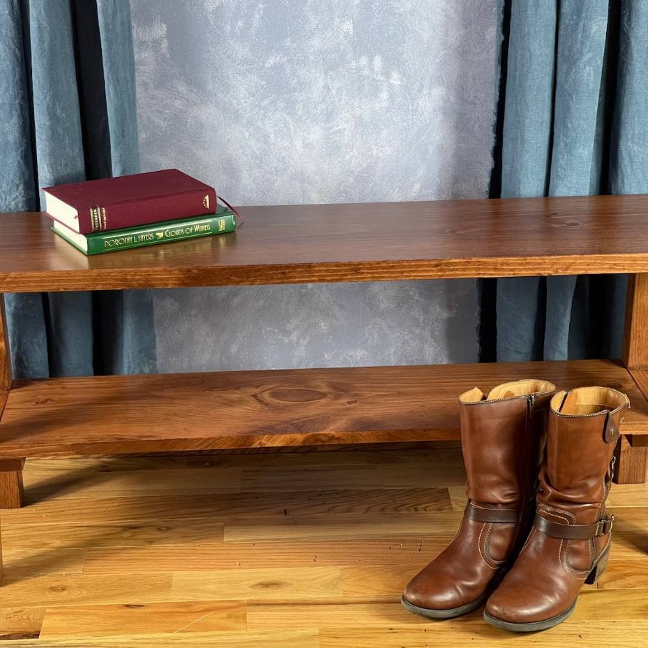 Banc d'entrée en bois massif avec étagère, design rustique, porte-chaussures, taille personnalisable, autoportant