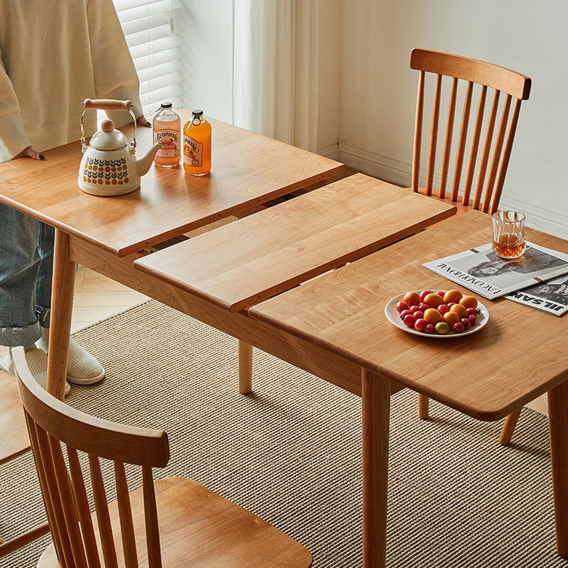 Table à manger extensible en bois massif, structure rectangulaire en bois de cerisier, pour usage domestique