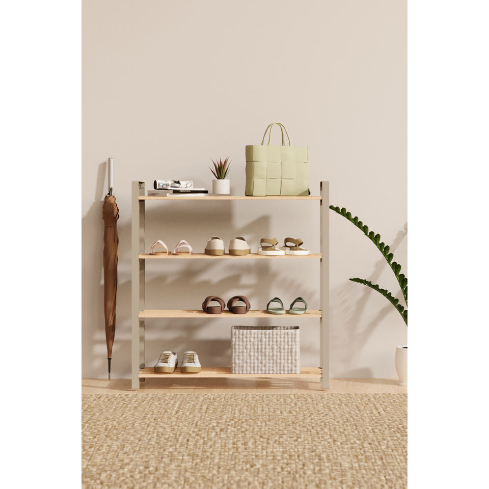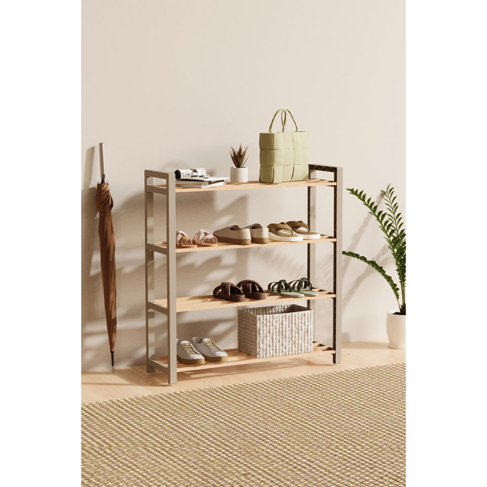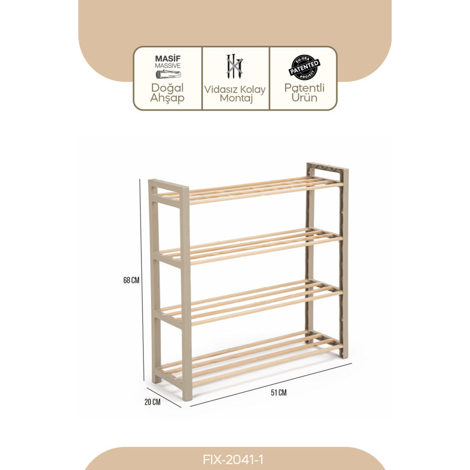 Étagère à chaussures moderne en bois massif avec barres, modèle Fix-2041-1, hauteur 68 cm, largeur 68 cm, profondeur 20 cm, couleur Bey
