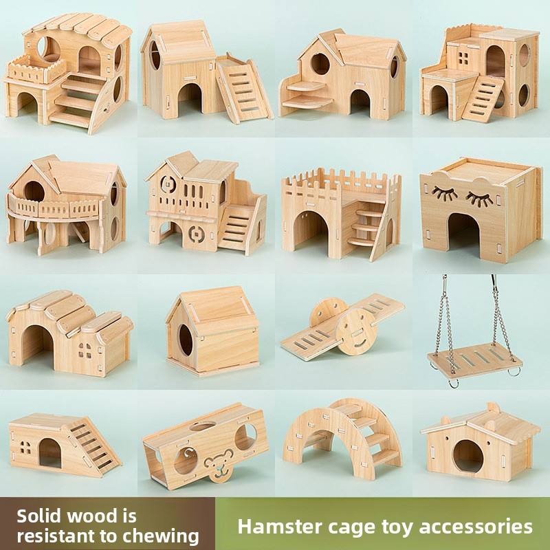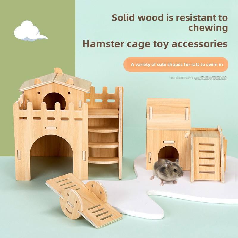 Maison de Hamster en bois massif Transparent monocouche accessoires de Cage d'ours doré fermeture à bouton petit Animal jouet Villa fournitures