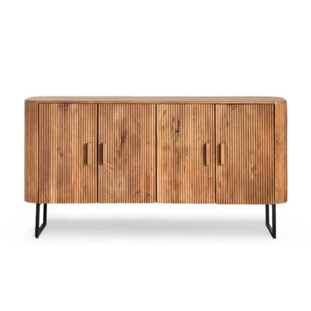 Buffet en bois massif fait main avec motifs sculptés artistiques, rehaussant la décoration de la salle à manger et offrant un grand espace de rangement