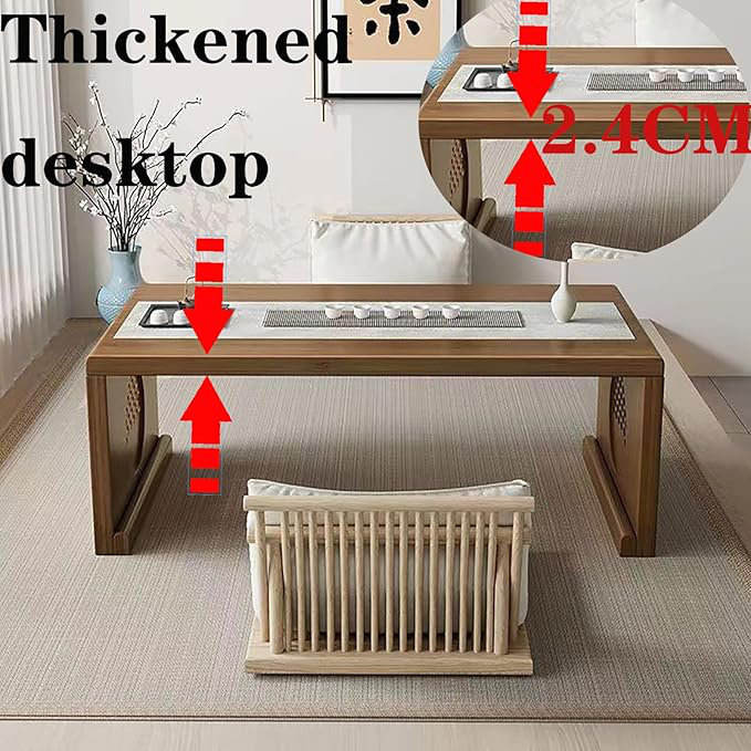 Table basse japonaise en bois massif DreamCraft, portable, pliable, avec cadre en métal, pas de montage requis, basse, pour salon