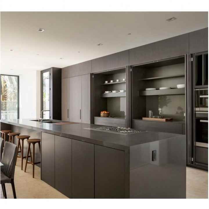 Armoires de cuisine en bois massif avec un design moderne, meubles de cuisine multifonctionnels de qualité, plan de travail stratifié, accessoire de robinet