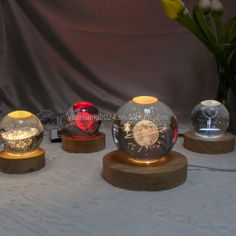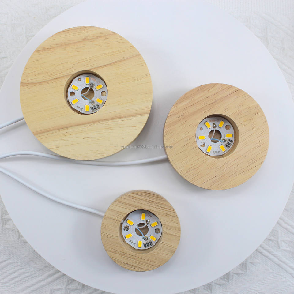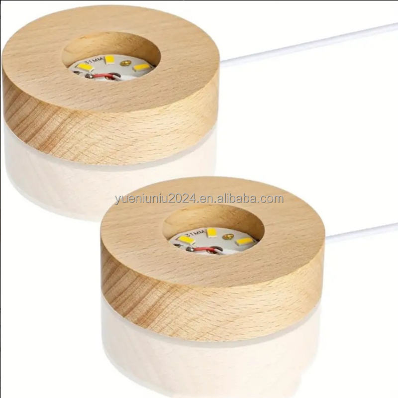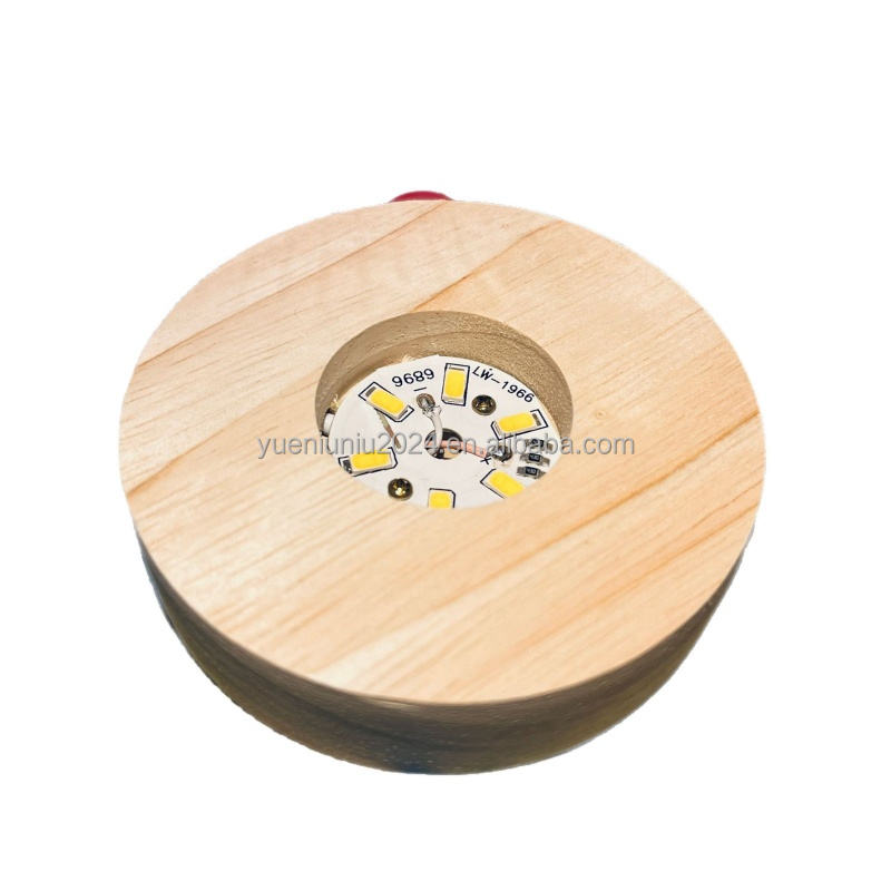Petite veilleuse LED en bois massif, lampe ronde en bois lumineuse, base de lampe en cristal