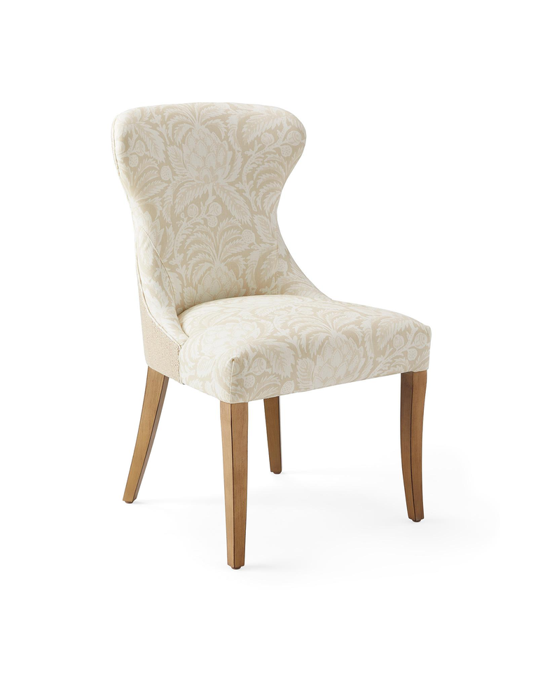 Solid Wood Legs Exquisitely Dressed Linen Botanical Print Textured Raffia Back for Home Office or Dining