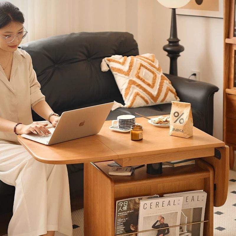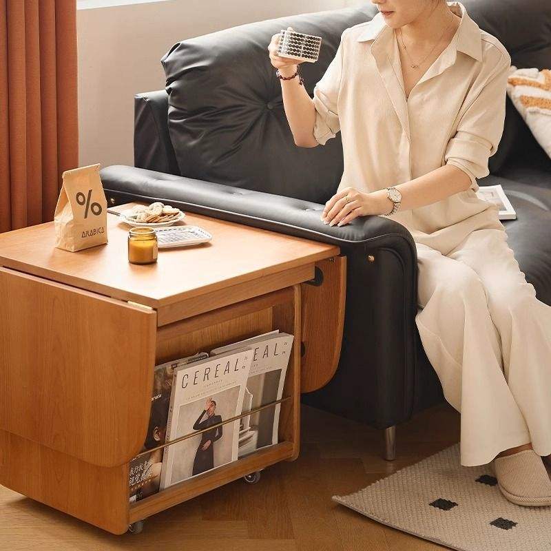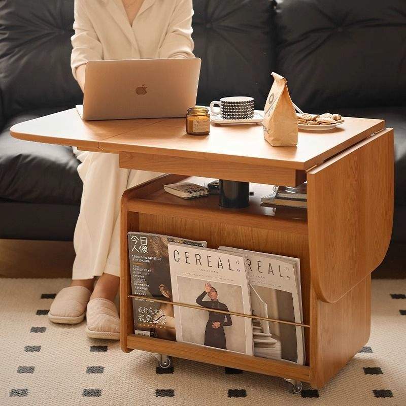 Table basse pliante en bois massif avec rangement et roulettes pour salon, usage domestique, chariot multifonctionnel, table à thé