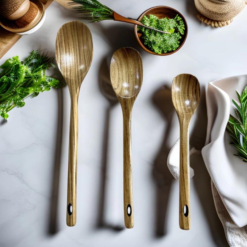 Ensemble de cuillères à long manche en bois massif, trois pièces, style japonais, ustensiles de cuisine écologiques pour la cuisson, le mélange et le service