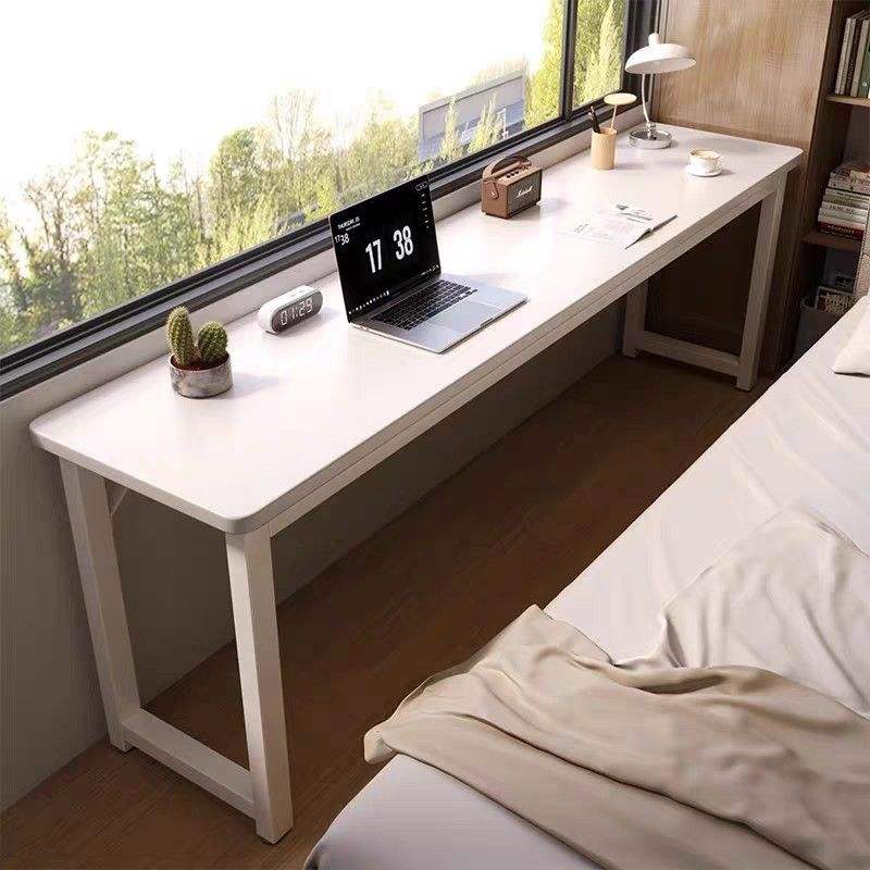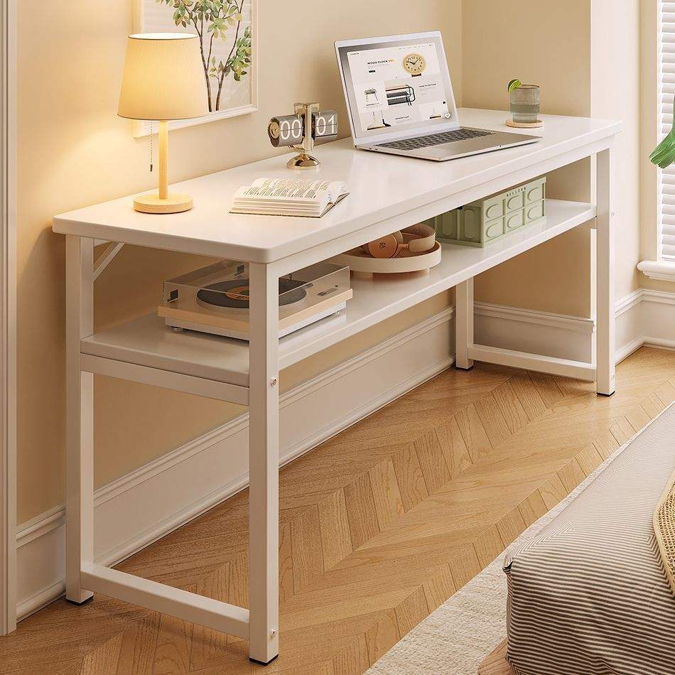 Bureau d'étude double couche en bois massif avec rangement, idéal pour étudiants et télétravail, table étroite murale pour ordinateur