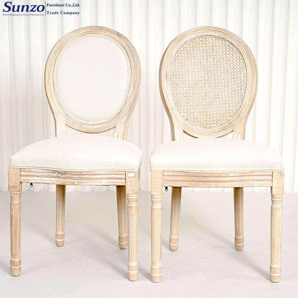 Nom du produit:Chaise Louis en osier avec dossier en bois pour mariage, hôtel, événement