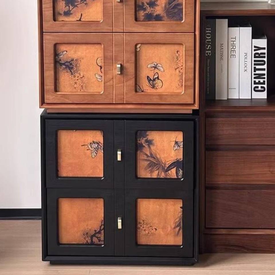 Armoire de rangement murale en bois massif de style médiéval Petit appartement Chambre à coucher Salon Tiroir Table de chevet Armoire élégante