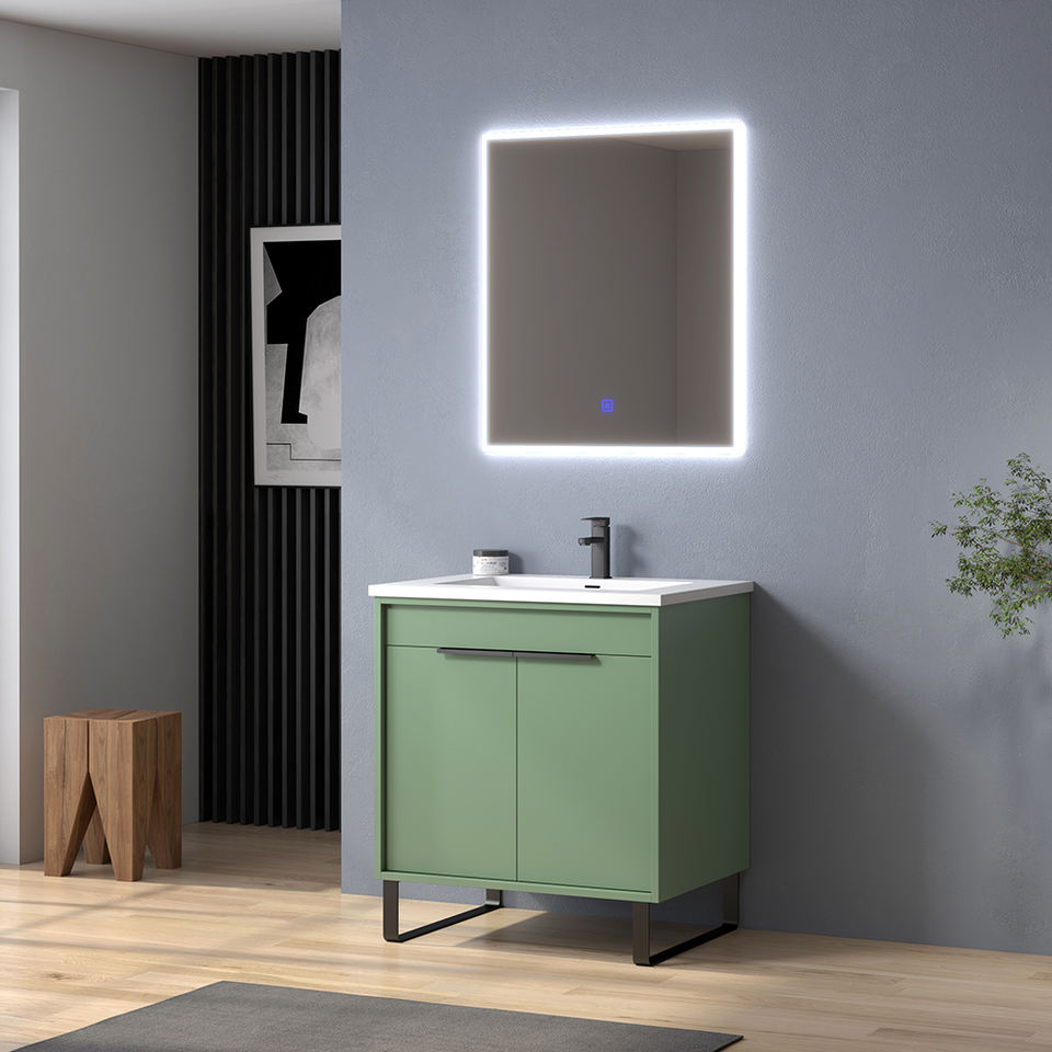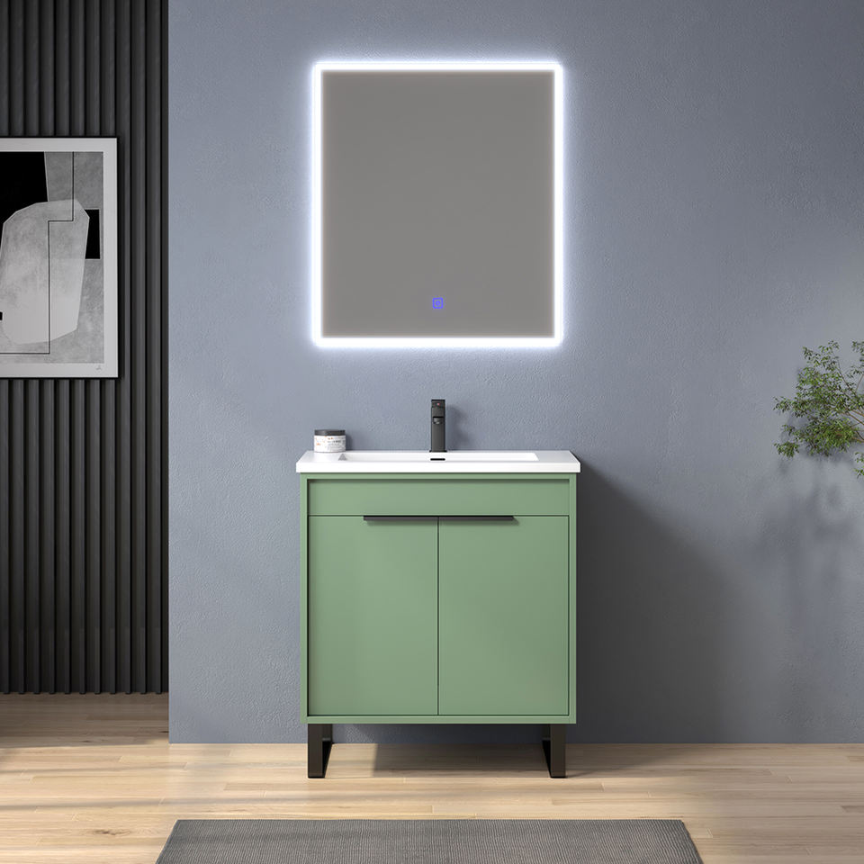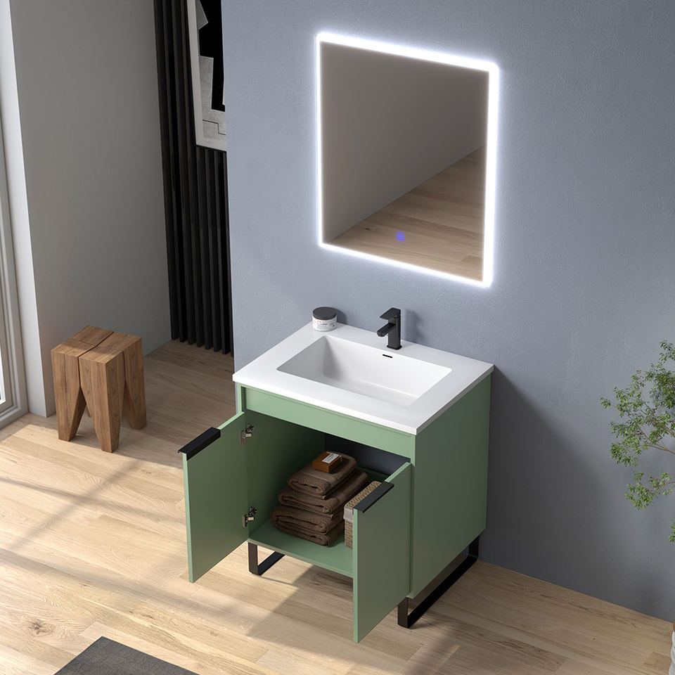 Meuble-lavabo moderne en bois massif avec vasque en céramique, durable, anti-rayures, résistant à l'eau, miroir LED inclus pour salles de bain de villas