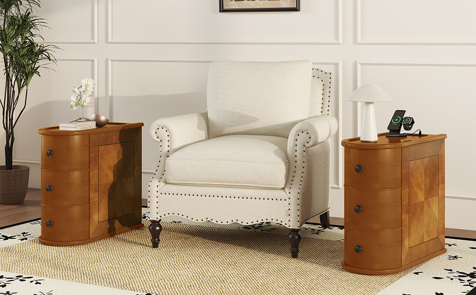 Table d'appoint moderne en bois massif avec station de charge et tiroirs, hauteur réglable, aucun assemblage requis