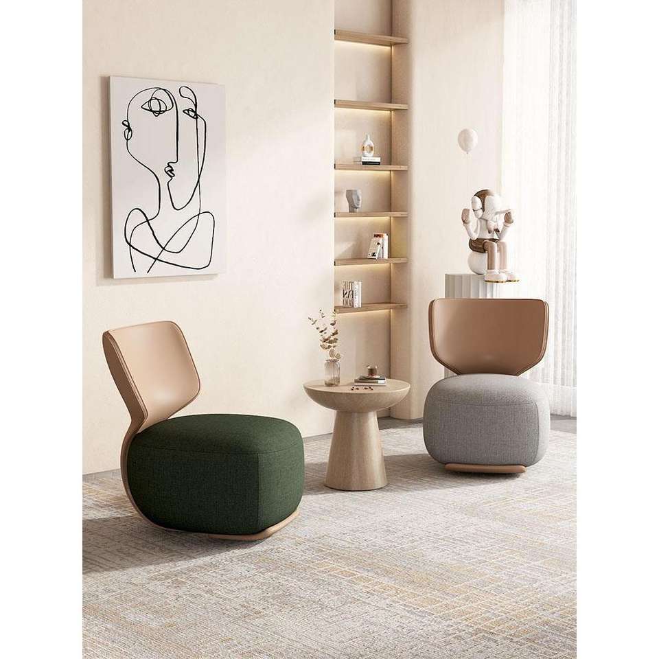 Fauteuil simple en bois massif de style nordique, dossier en tissu doux, chaise de salon pour le loisir