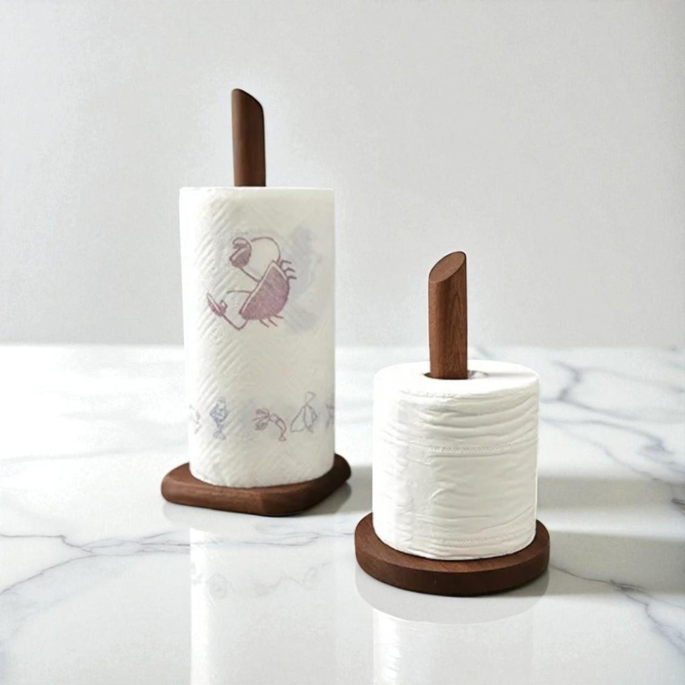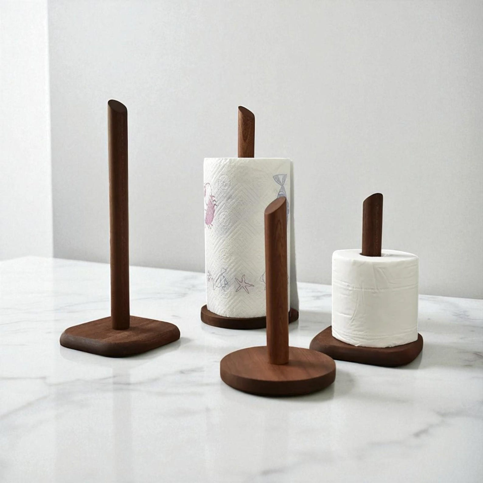 Support pour essuie-tout en bois massif | Distributeur de rouleaux de papier pour comptoir de cuisine naturel