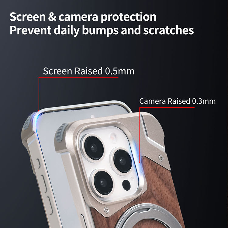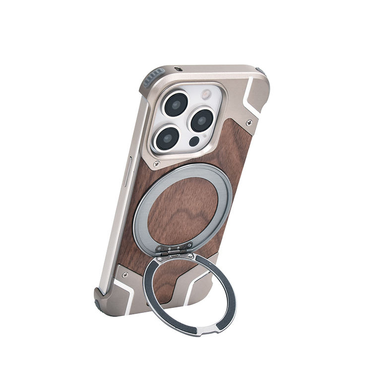 Étui de téléphone en bois massif pour iPhone 15 16 Pro Max étui de téléphone à support magnétique à cadre métallique pour iPhone 14 Y 13 Pro Max