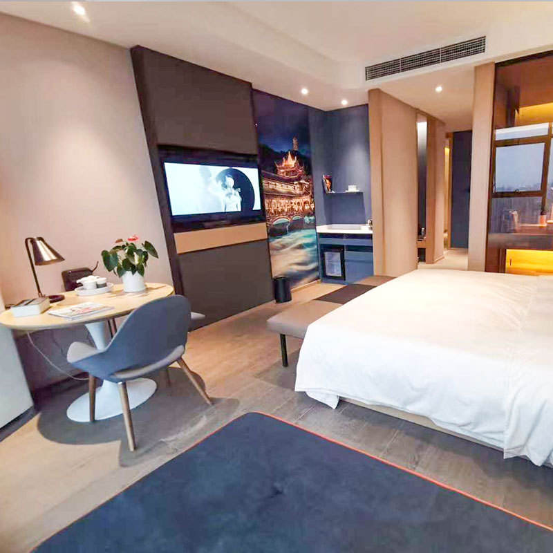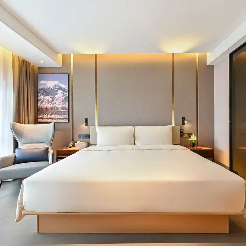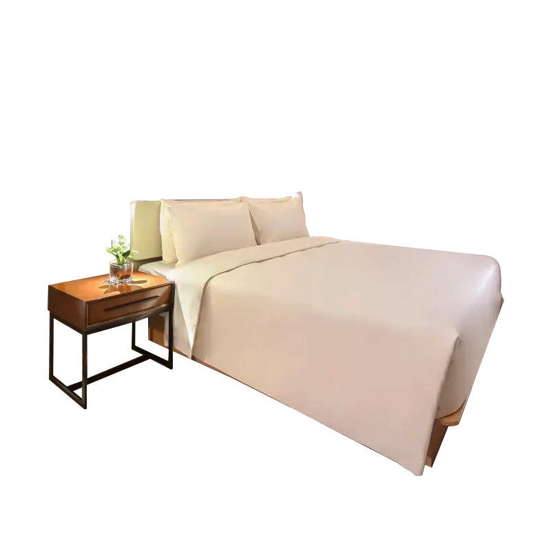 Ensemble de cadre de lit à plateforme en bois massif avec tête de lit Matelas et tables de chevet inclus pour les projets de mobilier d'hôtel à petit budget