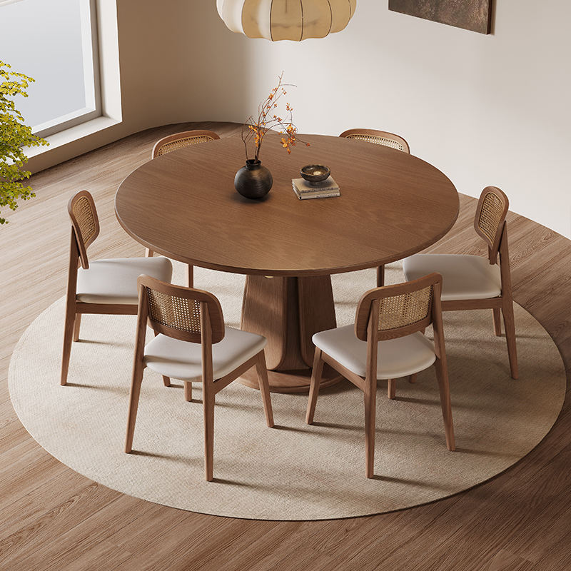 Table à manger ronde en bois massif avec chaises à dossier en rotin, design minimaliste pour petits espaces, ensemble de salle à manger moderne