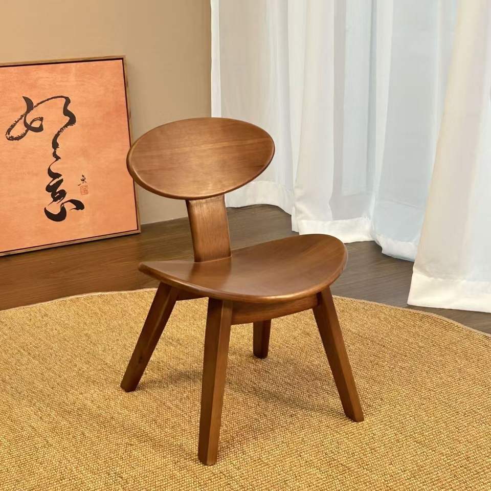 Tabouret coquille en bois massif, couleur noyercouleur