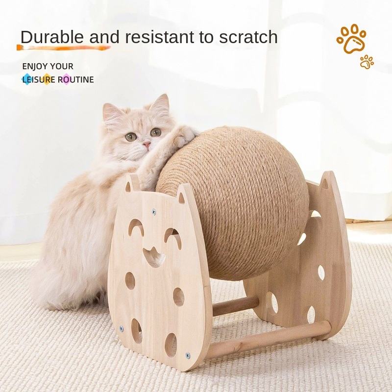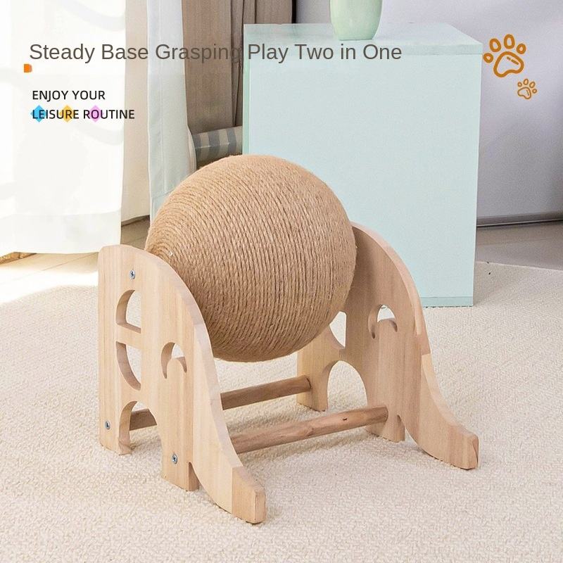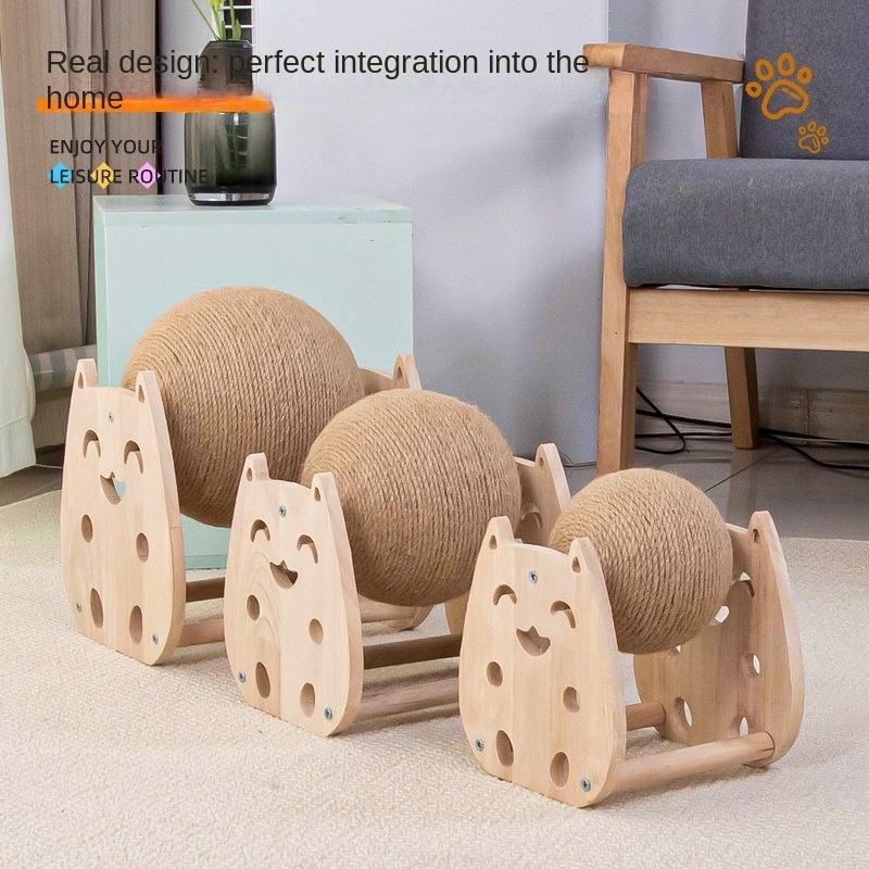 Balle à gratter pour chat en bois massif et sisal, résistante à l'usure et aux rayures, avec un style venté adorable pour animaux de compagnie