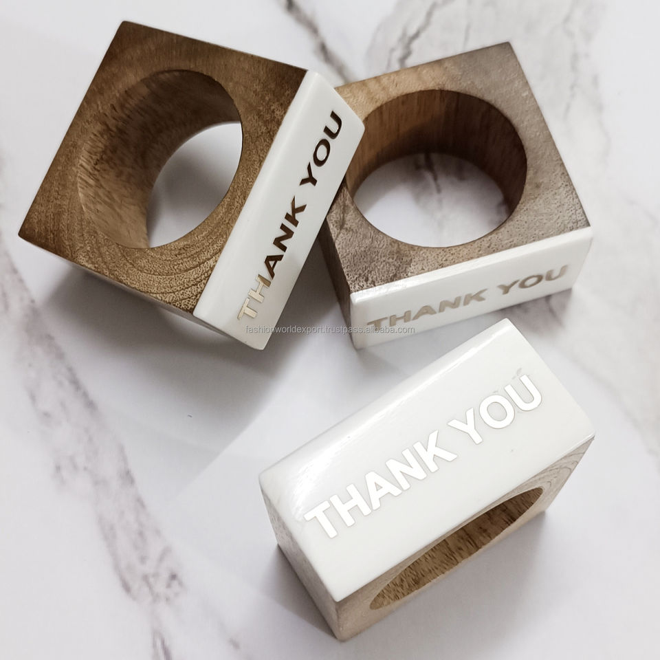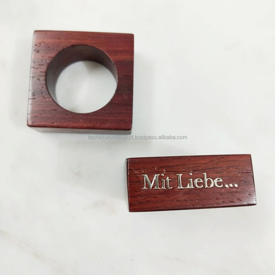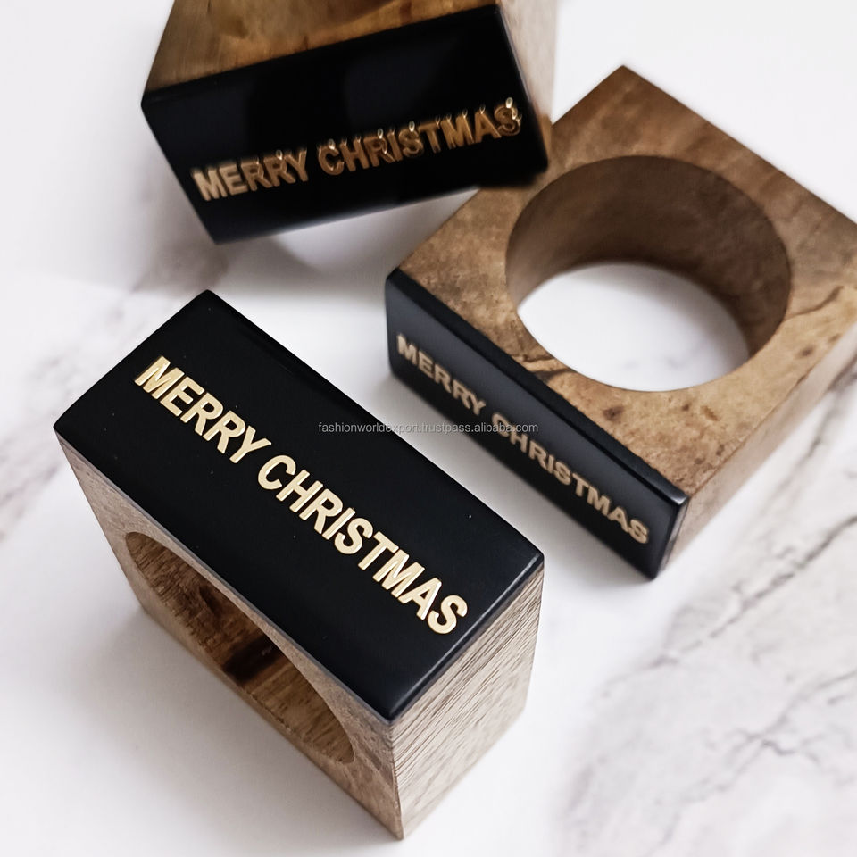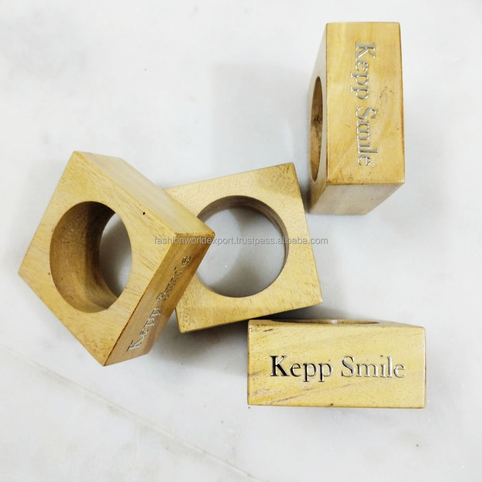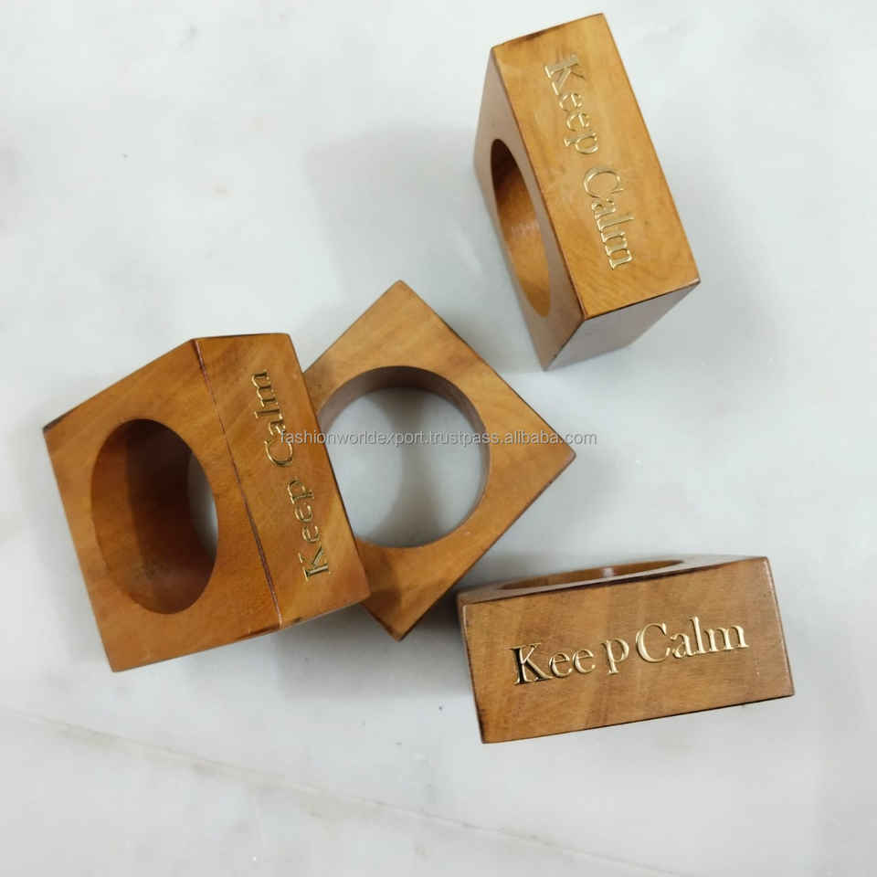 Anneau de serviette carré en bois massif avec gravure 'Keep Calm', écologique, élégant et rustique, pour la mise en table de fête, les événements à domicile et les accessoires de table en lin