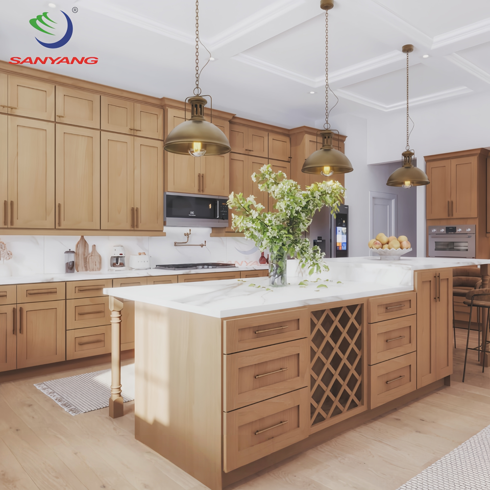 Armoire de cuisine en bois massif teinté érable Meuble d'armoire de cuisine Meuble de cuisine complet de haute qualité à prix abordable