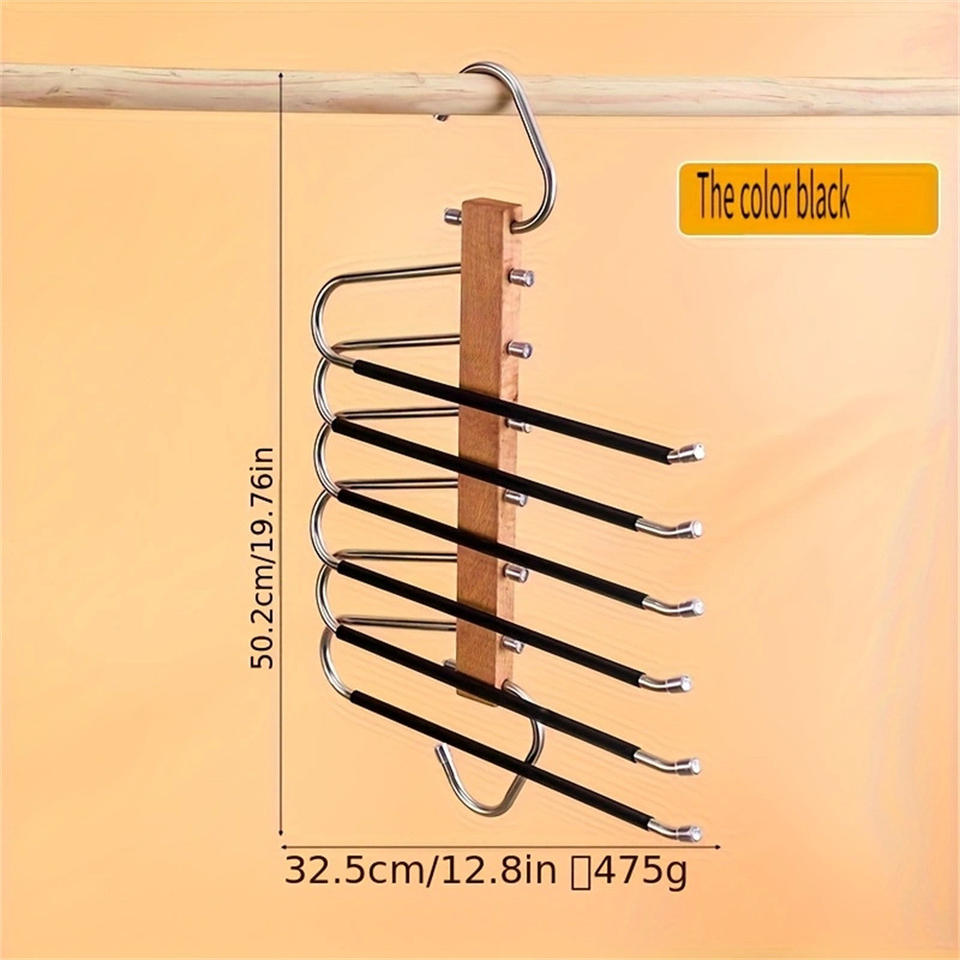 Porte-pantalon en bois massif et acier inoxydable, organisateur de vêtements pliable multi-niveaux, design minimaliste avec crochets