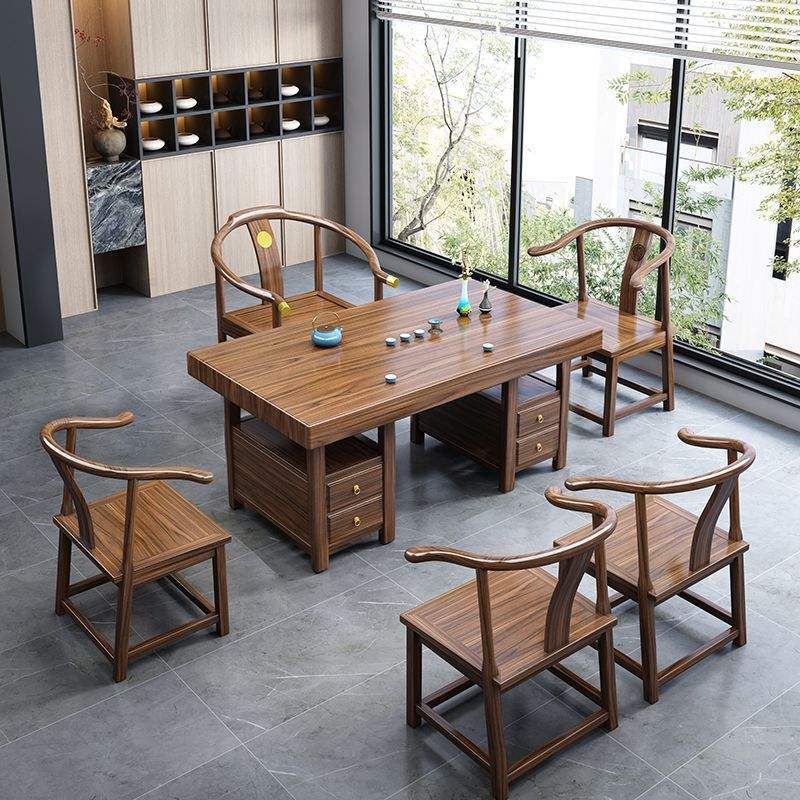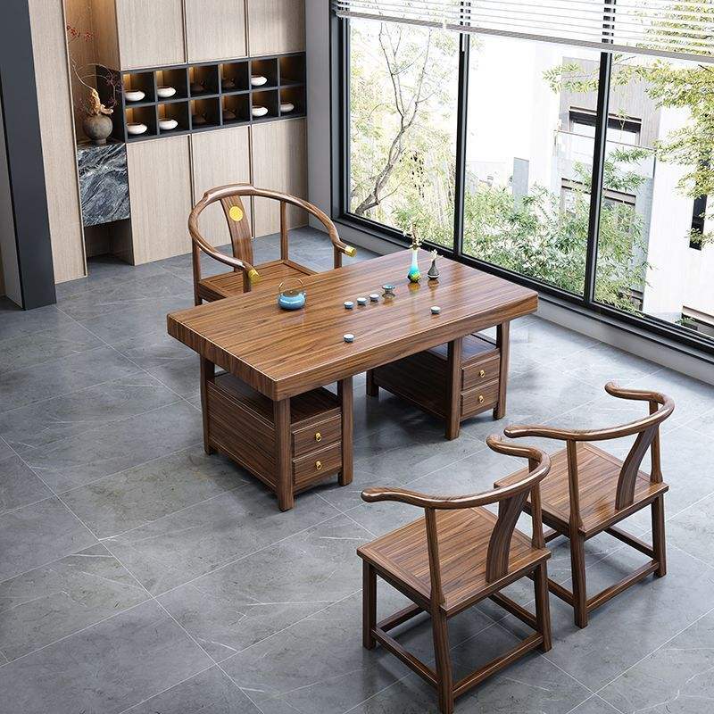 Ensemble table et chaises en bois massif, 4 pièces, durable, avec rangement, pour la maison, le bureau, et la pratique du thé Kung Fu chinois