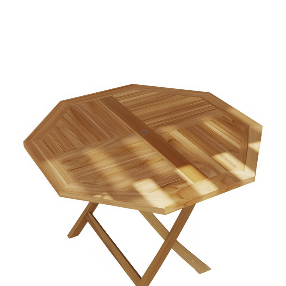 Table d'extérieur en teck massif, design octogonal, style contemporain, 35,4 pouces, pour la vie en plein air
