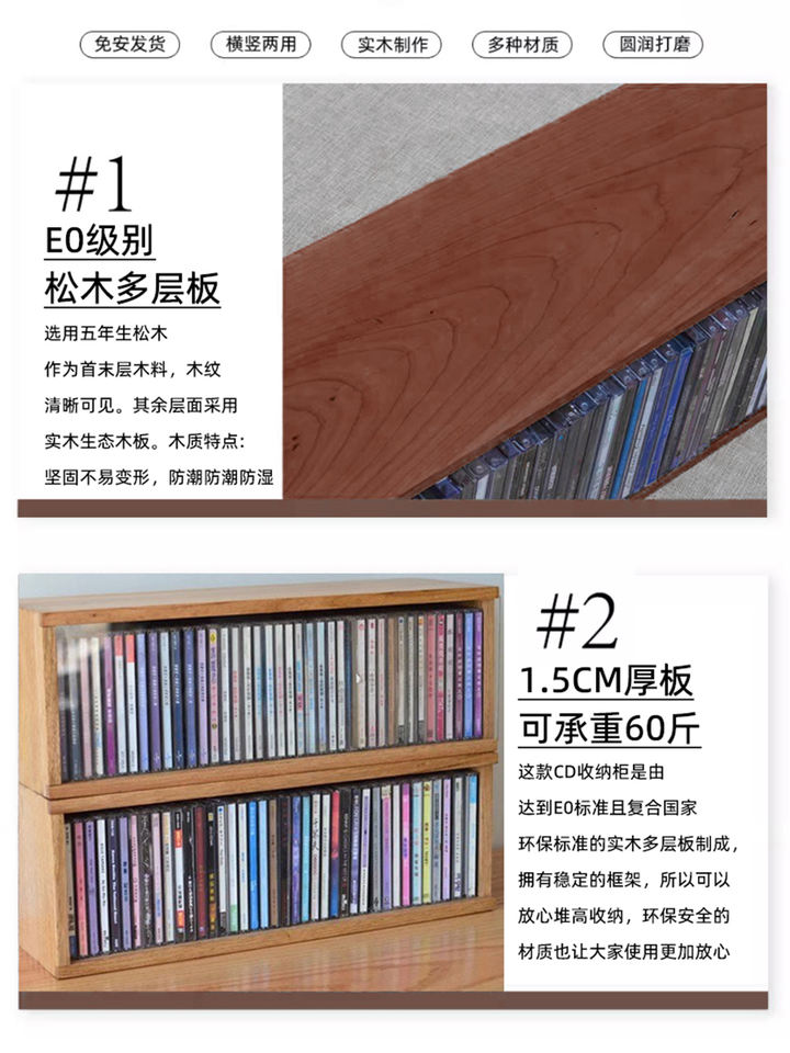 Boîte de rangement pour CD en bois massif, polyvalente, placée horizontalement ou verticalement, pour la maison, le salon, l'hôtel ou le bureau à domicile