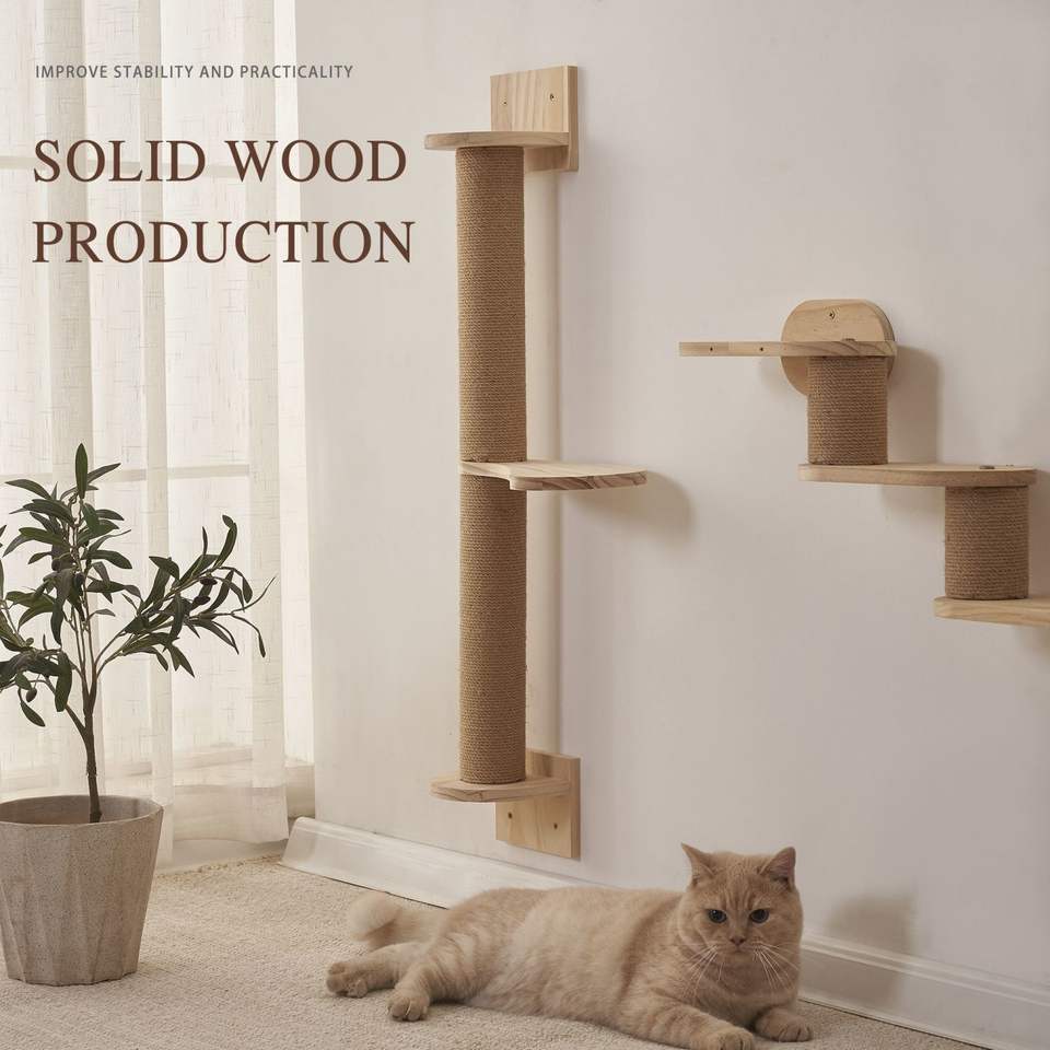 Arbre à chat mural en bois massif, griffoir mural en bois, plateforme suspendue avec escalier pour chat