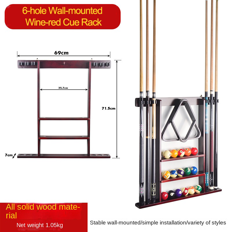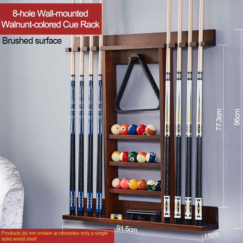 Porte-queue mural en bois massif pour billard avec six huit trous Logo personnalisable Surface brossée Accessoires de sport dans une boîte